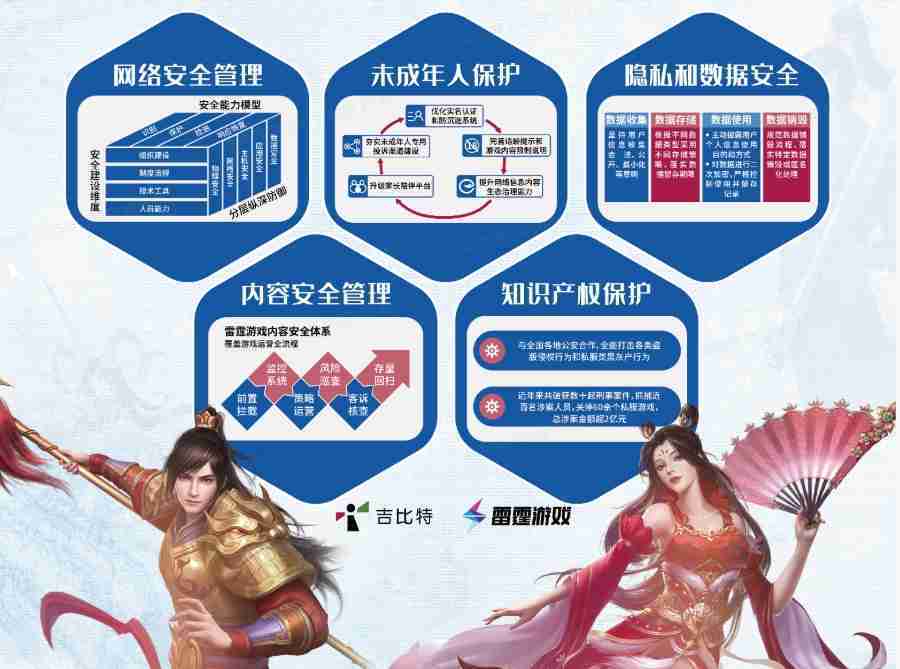 本次一竞技展区以网络安全管理、、内容安全管理、、未成年人保护、、、隐私和数据安全、、、知识产权保护五个模块介绍公司游戏安全工作成果,,,,体现一竞技高度重视网络安全,,,,严格遵守相关法律法规要求,,,积极承担企业主体责任。。。